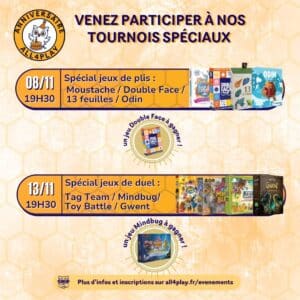 Ouverture des portes : 19h00 Début du tournoi : 19h30 Format : Modified Champion Deck 3 rondes en BO3 de 55 minutes PAF : 35€ : 2 boosters + 1 deck préconstruit (incluant un booster) 18€ : si vous avez déjà votre deck préconstruit, nous vous fourniront uniquement les 3 boosters Dotations : Pack promo […] ...