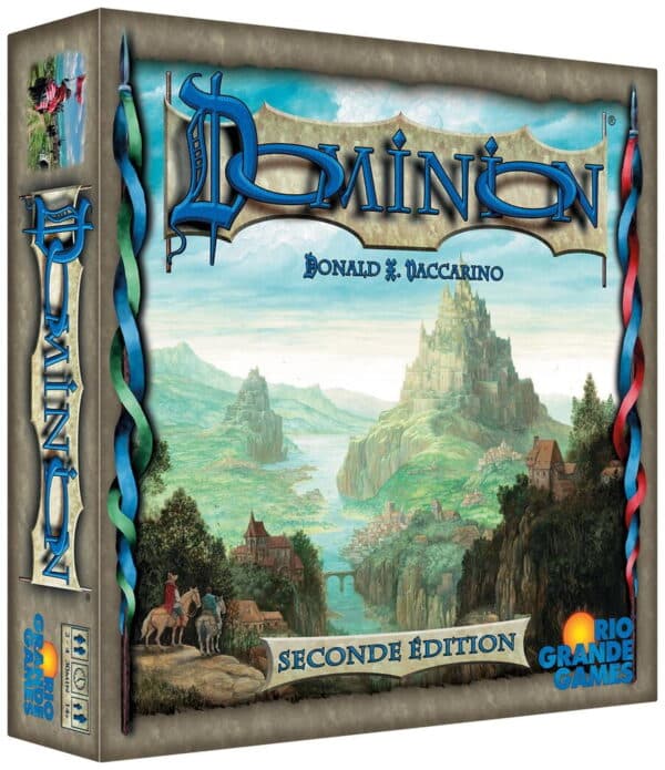 Dans Dominion Seconde Edition, chaque joueur commence avec un petit jeu de cartes identique. Au centre de la table se trouve une sélection d'autres cartes que les joueurs peuvent " acheter " s'ils en ont les moyens. En choisissant les cartes à acheter et en jouant leurs mains au fur et à mesure qu'ils les piochent, les joueurs construisent leur jeu à la volée, s'efforçant de trouver le chemin le plus efficace pour obtenir les précieux points de victoire à la fin de la partie.