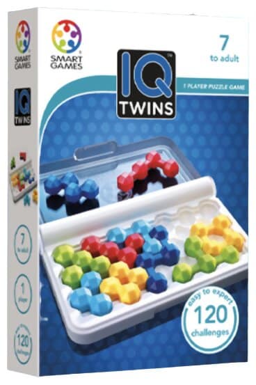 Les pièces jumelles d'IQ Twins marquent leurs differences ! 10 pièces sont réparties en 5 paires de même couleur. Dans chaque paire les pièces partagent une forme similaire, mais une des pièces doit être orientée à 45° de l'autre. Ce jeu de la gamme IQ possède un boîtier pratique pour voyager et propose 120 défis adaptés aussi bien pour les enfants que pour les adultes. Êtes-vous prêts pour cet entraînement cérébral ?